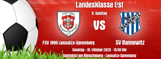 Im vierten Neusalzaer Ligaheimspiel der noch jungen Saison gegen den Aufsteiger SV Bannewitz heißt es für die Gastgeber schleunigst wieder in die Spur zu finden und den Schalter umzulegen. Zuletzt hatte man die Partie des 7. Spieltags mit 4:3 (2:2) beim Bischofswerdaer FV 08 II verloren und war in der 3. Hauptrunde des Landespokal Sachsen bei der SG Dresden Striesen mit 2:1 (1:1) ausgeschieden. Nun steht endlich wieder ein Heimspiel an, in welchem sich die 1. Männermannschaft des FSV 1990 Neusalza-Spremberg vor eigenem Publikum an der Spitze der Tabelle der Landesklasse Ost etwas absetzen kann. Grundvoraussetzung ist natürlich ein eigener Sieg. Bereits am Vortag treffen die unmittelbaren Verfolger FSV Oderwitz 02 (3.) und SG Dresden Striesen (2.), sowie zeitglcihe der SV Chemie Dohna (4.) und der Hoyerswerdaer FC (6.) aufeinander und klauen einander Punkte. Bis auf Andreas Wanacki (Urlaub), Dominik Šebek (Verletzung) und Dominic Schiring (Aufbautraining) kann FSV Trainer André Kohlschütter auf alle Spieler zurückgreifen und aus dem Vollen schöpfen. Die Gäste sind als Aufsteiger aus der Kreisoberliga Sächsischen Schweiz/Osterzgebirge sicherlich kein einfacher Gegner. Auch wenn man den Sprung in die Landesklasse nur als Tabellenzweiter schaffte, wird man sich am Hänscheberg nicht chancenlos ergeben. Zudem benötigen die SVB Kicker jeden Punkt für den Klassenerhalt, welcher durch einen drohenden Punktabzug wegen Nichterfüllung des Schiedsrichtersolls sicherlich nicht einfacher wird. Aktuell stehen die Bannewitzer mit acht Punkten auf dem elften Platz der Tabelle und haben genau zehn Punkte weniger auf dem Konto als die Neusalzaer FSV Kicker. Letztmalige in diesem Kalenderjahr 2025 wird ein FSV Heimspiel um 15:00 Uhr angepfiffen, den bereits am kommenden Wochenende werden die Uhren auf Winterzeit umgestellt. Da die Gäste aus dem Dresdner Speckgürtel sich mit einem Reisebus angekündigt haben, öffnen die Sportplatztore an diesem Sonntag schon um 13:30 Uhr. Für das leibliche Wohl in flüssiger Form sorgt diesmal Spieltagspate die Bergquell Brauerei Löbau GmbH und Bernd am Grill, welcher leckere Sachen der Fleischerei Ganske wendet und anbietet. Die 2. Männermannschaft des FSV 1990 Neusalza-Spremberg hat am Wochenende spielfrei. (gs)