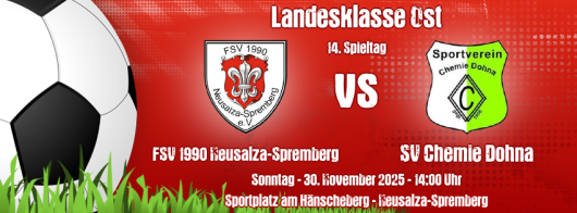 Der Winter hat die Oberlausitz wieder fest im Griff. Aktuell ist die Begegnung des 14. Spieltags der Landesklasse Ost zwischen den Neusalzaer FSV Kickern und dem SV Chemie Dohna noch auf dem Sportplatz am Hänscheberg in Neusalza-Spremberg angesetzt. Dort geht aktuell aber nichts. Daher beschäftigen sich die Verantwortlichem am Hänscheberg aktuell mit Ausweichvarianten. Für das Spiel selbst hat FSV Trainer André Kohlschütter weitgehend alle Spieler an Bord. So fehlt nur der rotgesperrte Jan Hybner und der langzeitverletzte Dominik Šebek. Selbst Philipp Mühlmann hat sich überraschend fit gemeldet und steht zur Verfügung. Bisher gab es zwischen beiden Kontrahenten zwei Duelle, diese datieren aus der Vorsaison als die Neusalzaer das Hinspiel am heimischen Hänscheberg mit 6:0 (3:0) gewannen und auch im Rückspiel mit 2:5 (1:3) die Oberhand behielten. Der neue Chemie Trainer Uwe Rahle hat die hat seiner Mannschaft aber neue Impulse vermittelt und so spielen die Dohnaer eine gute Hinrunde, stehen nur sechs Punkte hinter der 1. Männermannschaft des FSV 1990 Neusalza-Spremberg auf dem fünften Tabellenplatz. Es wartet also eine schwere Aufgabe auf die Neusalzaer in diesem Heimspiel. Spieltagspate ist diesmal die Bergquell Brauerei Löbau GmbH. Der Grill wird diesmal definitiv nicht angeschmissen. Sollte aber auf einen Fremdplatz ausgewichen werden, ist für das leibliche Wohl dennoch gesorgt. Über den Spielort informiert der FSV 1990 Neusalza-Spremberg über die sozialen Medien und die Vereinshomepage www.fsv-neusalza-spremberg.de.