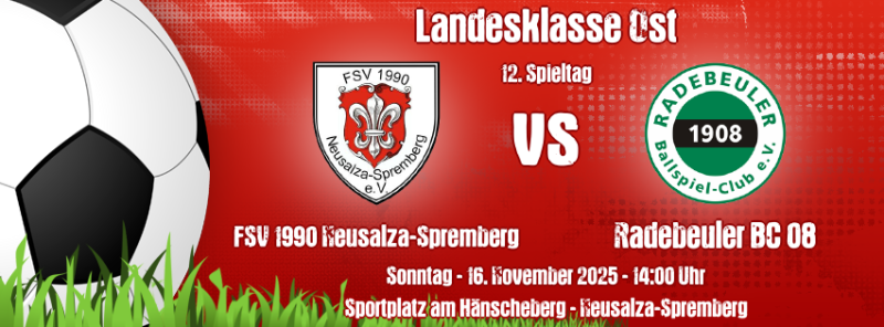 Im Heimspiel gegen den Radebeuler BC 1908 mussten die Neusalzaer ohne Innenverteidiger Jan Hybner (Rotsperre) und seine verletzten Abwehrkollegen Philipp Mühlmann und Dominik Sebek auskommen. Aber auch die Gäste spielten ohne die verletzten Defensivspieler Max Keller und Erik Talke. Die Gastgeber erwischten den etwas besseren Starte. FSV Stürmer Marius Riedel scheiterte mit einem Drehschuss an RBC Keeper Philipp Schreiber und der aufmerksamen RBC Abwehr (16.). Ein Sololauf von Paul Jockuschs landete am Außennetz (17.). In der 20. Spielminute verzeichneten die Radebeuler ihre erste Großchance. Eine Deinhart Flanke köpfte Torben Schreiber an die Unterkante der Neusalzaer Querlatte, den zurückspringenden Ball klärte die Platzherren mit vereinten Kräften. Kurz darauf scheiterte Paul Jockusch an Gästetormann Philipp Schreiber, der abgewehrte Ball landete bei Leon Erdmann, welcher Marius Riedel bediente und dieser frei zum 1:0 einschoss (24.). FSV Kapitän Tobias Draßdo verfehlte das Tor der Gäste dann knapp (31.). Anschließend musste Geburtstagskind Andreas Wanacki mit einer Armverletzung vom Feld und in das Krankenhaus (33.). Für ihn kam David Haist in die Partie. Kurz vor der Pause parierte FSV Keeper Dominic Schiring einen Schuss von Leon Trier (42.) als er gedankenschnell die Arme nach oben riss. Derselbe RBC Spieler knallte den Ball kurz vor dem Pausenpfiff an den Innenpfosten (45.+1). Dazwischen fand ein Treffer von FSV Torjäger Marius Riedel wegen Abseits keine Anerkennung (45.). So ging es mit einer eher glücklichen Neusalzaer Führung in Pause. Aus dieser kamen die Gäste wacher, so marschierte Steve Deinhart aus halbrechter Position allein auf das Neusalzaer Tor zu und schoss vorbei (48.). Die Neusalzaer brauchten bis zur 55. Minute, um wieder in die Partie zu finden und das 2:0 gut herauszuspielen. Über Marius Riedel und Paul Jockusch gelangte der Ball zu Leon Erdmann, welcher zunächst an RBC Tormann Philipp Schreiber scheiterte und den Nachschuss flach versenkte (55.). Danach scheiterte Paul Jockusch frei am Gästekeeper und auch Marius Riedel brachte das Streitobjekt im Nachsetzen nicht im Tor unter (60.). Seinen zweiten Tagestreffer konnte der FSV Stürmer gegen seinen Ex Verein nach punktgenauem Zuspiel von Tobias Draßdo per Lupfer in der 78. Minute bejubeln. Nach einem Foulspiel an Verteidiger Filip Bares im RBC Strafraum verwandelte Tobias Draßdo den Strafstoß sicher zum 4:0 (81.). Auf der Gegenseite fand ein Treffer von Leon Trier wegen Abseits keine Anerkennung (87.) und der eingewechselte FSV Kicker Felix Julius scheiterte nach einem Sololauf an RBC Torwart Philipp Schreiber (90.+1). Letztendlich freuten sich die Spieler des FSV 1990 Neusalza-Spremberg gemeinsam mit den Fans und Zuschauern über einen verdienten 4:0 Heimsieg. (gs)