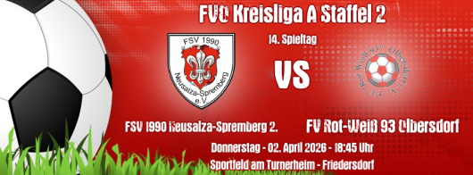 | Liga | 02.04. 18:45 | FSV 1990 Neusalza-Spremberg 2. | FV Rot-Weiß 93 Olbersdorf | 5:2 |