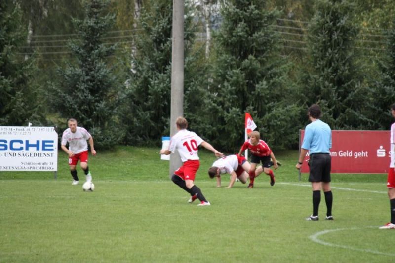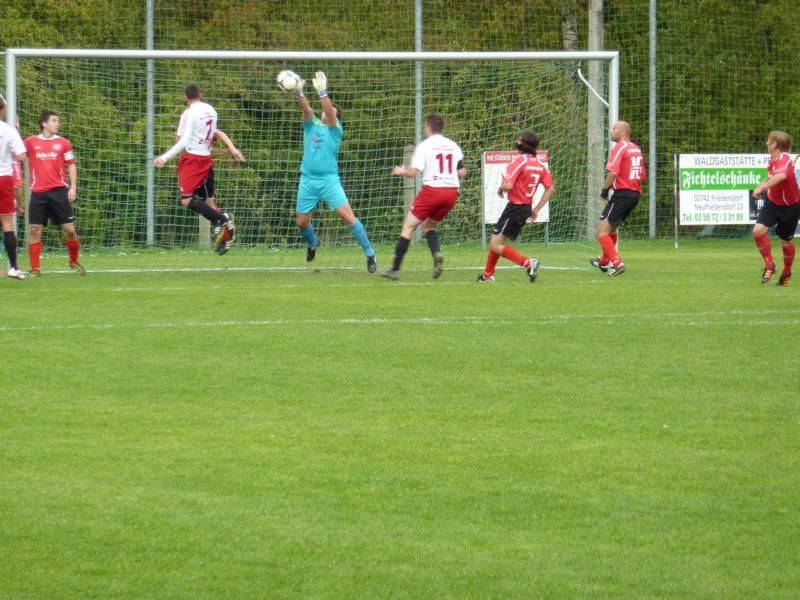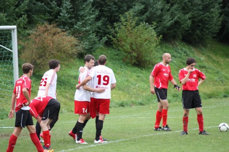 Die Begegnung war für den Gastgeber ein Spiegelbild der Partie in Weißwasser, wo man 70 Minuten guten Fußball spielte und unterlag. Gegen den LSV Friedersdorf zeigte man nur in den letzten 20 Minuten eine ansprechende Leistung, siegte aber mit 4:1. Einen kleinen Aufreger gab es kurz vor Beginn der Partie, als sich Marc Pötschke beim Aufwärmen erneut verletzte und durch Georg Schulze ersetzt wurde. Im Tor gab es zur Vorwoche den geplanten Wechsel, Markus Neugebauer kehrte für David Dieckhoff wieder zurück zwischen die Pfosten. Der Gast aus Friedersdorf musste seinen etatmäßigen Libero Enrico Kasper ersetzen. In einer Ereignisarmen ersten Halbzeit erzielte Nick Möbus mit einem herrlichen Freistoßtor das 0:1 (39.) für den LSV Friedersdorf. Kurz zuvor wurde ein gefährlicher Schuss von Pavel Bursa auf das Friedersdorfer Tor gerade noch geblockt (36.). Der FSV 1990 Neusalza-Spremberg tat sich zunächst auch im zweiten Durchgang schwer und so mussten die Standards wieder mal den Erfolg bringen. Ein Mihálik-Ecke köpfte Roman Lupa zu Thomas Hentschel, welcher selbst zum Ausgleich einköpfte (50.). Nach je einer Chance auf beiden Seite brachte eine erneute Standardsituation die Führung für den Gastgeber. Stefan Mihálik brachte den Freistoß nach innen und Roman Lupa nickte zum 2:1 ein (58.). Für Friedersdorf traf Nick Möbus danach das Außennetz (61.) und auf der anderen Seite traf Thomas Hentschel den Außenpfosten (72.). Zwischen beiden Chancen verwehrte der Bautzner Schiedsrichter Jan Töpel den Neusalzaern zwei klare Elfmeter, zunächst wurde Thomas Hentschel im Sechzehner von den Beinen geholt und nur kurz darauf ein Handspiel der Gäste im eigenen Strafraum nicht geahndet. Frei unter dem Motto aller guten Dinge sind drei gab es dann doch Strafstoß. Nach einem erneuten Handspiel in der 76. Minute übernahm Routine Stefan Mihálik und verwandelte den Elfer sicher zum 3:1. Die Kohlschütter-Schützlinge machten nun nochmals betrieb und eine Eingabe von Roman Lupa verfehlte Stefan Mihálik knapp (87.). In der Nachspielzeit verwandelte Jan Rehacek eine schon fast geklärte Ecke zum 4:1 Endstand (90. +4). Stefan Mihálik brachte wieder mal einen Eckball nach innen und Pavel Bursa beförderte den Ball auf das Tor, wo der Ball geblockt wurde und am langen Pfosten lauerte der einschussbereite Jan Rehacek, welcher den Endstand herstellte. Am Ende fiel das Ergebnis vielleicht um ein Tor zu hoch aus und der LSV Friedersdorf war mal wieder nah an einem Punktgewinn. Für den FSV 1990 Neusalza-Spremberg war es der dritte Sieg im dritten Heimspiel, bei denen man jeweils vier Treffer erzielte. FSV Stürmer Stefan Mihálik führt nach sechs Spieltagen die Torjägerliste an der FVO Kreisoberliga an - in fünf Spielen erzielte er acht Treffer. Ein Dankeschön geht an dieser Stelle an die Physiotherapie Wendler, welche unseren Torwart Markus Neugebauer für das Spiel fit machen konnte. (gs)