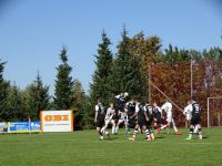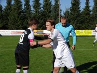 Pünktlich zum Spitzenspiel der A-Junioren Kreisliga A gegen die Spielgemeinschaft SG Rotation Oberseifersdorf/VfB Zittau/ESV Lok Zittau packten die Neusalzaer FSV Kicker ihre bisher beste Saisonleistung aus spielen den unmittelbaren Verfolger Mitte der ersten Halbzeit förmlich an die Wand. Bereits nach fünf Minuten hatte Nick Ruschel die erste Großchance, doch sein Schuss strich knapp am Gästetor vorbei. Die Neusalzaer drückten den Gegner aus dem Dreiländereck förmlich in die eigene Hälfte und nach einem schnellen Einwurf von Rick Fischer legte Nick Ruschel quer auf Eric Huber, welcher zur schon zu diesem Zeitpunkt überfälligen Führung einschoss (8.). Mit ihrem ersten offensiven Lebenszeichen kamen die Gäste etwas glücklich zum Ausgleich. Nach einer Freistoßeingabe von Nicki Wistuba köpfte Eddy Wehland das Spielgerät in die eigenen Maschen (10.). Die Gastgeber schüttelten sich kurz und korrigierten dieses Missgeschick nur drei Minuten später mit dem 2:1 durch Nick Ruschel. Nach einem weiten Einwurf von Richard Humbsch verlängerte ein Zittauer Spieler den Ball unfreiwillig, Nick Ruschel lauerte am langen Pfosten, täuschte seinen Gegenspiel und schoss ins lange Ecke zur erneuten Führung ein. Die Spielgemeinschaft versuchte mitzuspielen, Neusalza-Spremberg unterband dies durch mehrere Fouls. Richard Humbsch (16.) und Eddy Wehland (29.) kassierte dafür gelbe Karten. Nach einer halben Stunden hatten die FSV Kicker den Gast aber fest im Griff. Nach Zuspiel von Willi Berge setzte Eric Huber einen abgefälschten Schuss über den Gästekeeper Tobias Koschelt hinweg ins Tor und markierte so das 3:1 (33.). Eine Wehland Flanke köpfte Willi Berge sehenswert zum 4:1 in die Maschen (35.). Und erneut nur zwei Minuten später veredelte Torjäger Nick Ruschel eine starke Einzelleistung von Willi Berge zum 5:1 Pausenstand (37.). Die Platzherren hatten vor reichlich 60 Zuschauer nun klar die Oberhand und waren mittlerweile in allen Belangen das überlegene Team. Nach der Pause suchten die Süße Schützlinge aber nicht mehr ganz so konsequent den Zug zum Tor. Nach einem Fehler der Gäste setzte Nick Ruschel eine Wehland Eingabe neben das Tor (51.) und auch der Flankengeber setzte kurz darauf eine Freistoßeingabe von Eric Huber neben den Kasten (55.). Nach exakt einer Stunde erhöhte Louis Rudolph, nach einem Foul an Nick Ruschel, per Freistoß sehenswert zum 6:1 (60.). Der beste Gästespieler und Kapitän Nicki Wistube erzielte nur fünf Minuten später ebenfalls einen schönen Freistoßtreffer zum 6:2 (65.). In der 70. Spielminute beförderte Max Tischer den Ball weit nach vorn, Löuis Rudolph flankte an den langen Pfosten, wo Wili Berge lauerte und zum 7:2 Endstand einköpfte. Die Neusalzaer hatten noch weitere Möglichkeiten durch Eric Huber (73.) und Nick Ruschel (76./88. Lattenschuss) das Ergebnis weiter zu verbessern. Auf der Gegenseite parierte Vincent Heidisch gegen den Gästestürmer Mansoor Abdo mit tollem Reflex (80.). Am Ende belohnten sich die jungen FSV Kicker mit dem fünften Sieg im fünften Ligasspiel und bauen so ihren Vorsprung in der Tabelle der Kreisliga A weiter aus. (gs)
