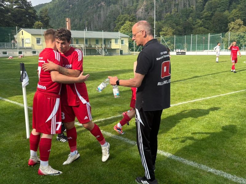 Die Neusalzaer FSV Kicker gastierten zum Erstrundenspiel im Landespokal Sachsen im schönen Osterzgebirge. Für die herrliche Landschaft hatten die Gäste vor über 200 Zuschauern aber kaum Augen, denn sie hatte mächtig zu tun, um den gastgebenden SV Glashütte in Schach zu halten. Gästetrainer André Kohlschütter änderte seine Startelf zum Ligaauftakt, sechs Tage zuvor, auf insgesamt fünf Positionen. Unter anderem bleib auch FSV Kapitän Tobias Draßdo auf der Bank, seine Rolle als Spielführer übernahm Stürmer Marius Riedel. Mittelfeldspieler Louis Rudolph sorgte in der Anfangsphase gleich für ordentlich Wirbel in der Hintermannschaft der Platzherren. So parierte Pierre Oertel gleich nach wenigen Sekunden einen Schuss des Neusalzaers (1.). Eine Eingebe des 23 jährigen setze Martin Klimt per Direktabnahme über das Tor des SV Glashütte (6.). Und einen weiten Einwurf von Adrian Kittan verarbeitete Louis Rudolph stark, scheiterte dann aber mit seinem Schuss aus der Drehung an SVG Torwart Pierre Oertel (7.). In der elften Spielminute überspiele Colin Hahmann mit einem langen Ball die halbe Neusalzaer Mannschaft, Tim Jungnickel enteilte Pavel Frie und schoss unhaltbar zum 1:0 für den Kreisoberligaaufsteiger und Kreispokalsieger der Sächsischen Schweiz/Osterzgebirge ein. Die Gäste zeigten sich aber wenig beeindruckt von der Führung. So köpfte Marius Riedel eine Klimt Flanke am leeren Tor vorbei (16.). Kurze Zeit später konnte dann aber auch der FSV 1990 Neusalza-Spremberg jubeln. Nach einer feinen Ecke von Paul Jockusch köpfte Jan Hybner wuchtig zum Ausgleich ein (19.). Philipp Mühlmann verfehlte anschließend mit seinem Schuss knapp das Glashütter Tor (27.). Einen herrlich vorgetragenen Angriff der Gäste setzte Paul Jockusch am freien Tor vorbei (28.). Einen Jockusch Freistoß parierte SVG Keeper Pierre Oertel (35.). Und fast im Gegenzug scheiterte Colin Hahmann an FSV Torsteher Dominic Schiring (36.). Wiederum auf der Gegenseite überköpfte Paul Jockusch den Glashütter Tormann Pierre Oertel, allerdings auch seinen Kasten (37.). Kurz vor der Pause erzielte der Rückkehrer von der FSV Budissa Bautzen dann doch noch die Neusalzaer Führung. Nach feiner Vorarbeit und Eingabe von Martin Klimt musste Paul Jockusch den Ball nur noch in das leere Tor schießen (43.). In der Nachspielzeit der ersten Halbzeit erarbeitete sich Leonhard Fleck den Ball auf dem linken Flügel, entwischte der Neusalzaer Defensive und seine Eingabe verwandelte erneut Tim Jungnickel im Nachsetzen zum 2:2 (45.+1). So ging es mit einem munteren 2:2 in Pause, aus welcher die Neusalzaer deutlich zielstrebiger kamen. So hatten die FSV Kicker in der 47. Minute eine Dreifachchance. Louis Rudolph scheiterte an SVG Tormann Pierre Oertel, Paul Jockusch mit dem Nachschuss an Verteidiger Ben Wirthgen und letztendlich setze Martin Klimt den Ball frei über das Tor des neuen Kreisoberligisten. Vier Minuten später wurde Ben Wirthgen dann aber zum Pechvogel, als er ein steiles Zuspiel von Martin Klimt in das eigene Tor abfälschte (55.). Nach einer reichlichen Stunde nagelte Louis Rudolph den Ball an die Querlatte des SVG Kastens und Felix Julius setzte den Abpraller knapp am langen Pfosten vorbei (62.). Viele der Glashütter Schlachtenbummler versuchten ihre Mannschaft nochmal nach vorn zu peitschen und in der 72. Minute schaffte der SV Glashütte erneut den Ausgleich. Nach einem Steilpass durch das Neusalzaer Abwehrzentrum enteilte Tim Jungnickel erneut und schoss zum 3:3 ein. Den Gastgebern schwanden aber anschließen komplett die Kräfte und die Räume für die Neusalzaer, welcher auch nochmal viel Schwung von der Bank in das Spiel brachten, wurden immer größer. In der 83. Minute verlängerte Marius Riedel einen weiten Ball von FSV Keeper Dominic Schiring per Kopf in den Lauf von Leon Erdmann, welcher enteilte und Paul Jockusch bediente und zum 3:4 verwandelte. Nur wenige Sekunden später dann die endgültige Entscheidung. Nach feiner Kombination über Philipp Mühlmann und Paul Jockusch versenkte Marius Riedel das Zuspiel seines Offensivpartners zum 5:3 Endstand. Ein hartes Stück Arbeit war diese 1. Hauptrunde im Landespokal Sachsen für den Landesklassenvertreter aus Neusalza-Spremberg. (gs)