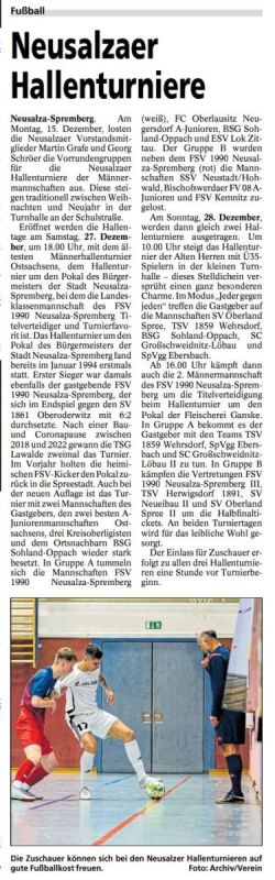 Hallenturnier um den Pokal des Bürgermeisters der Stadt Neusalza-Spremberg