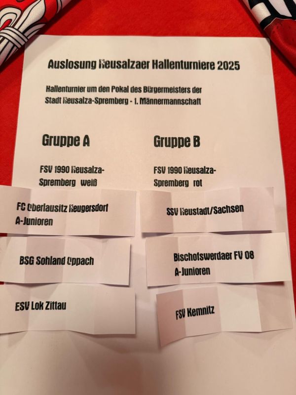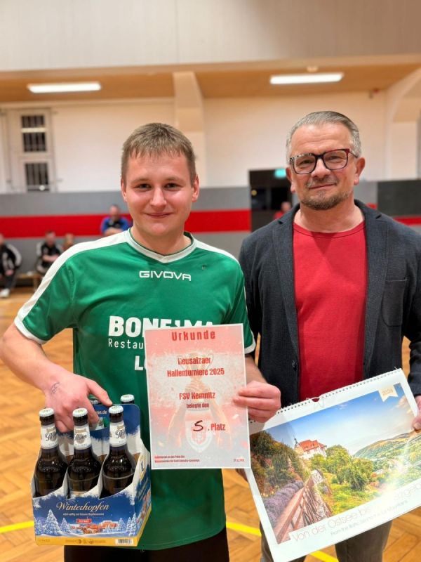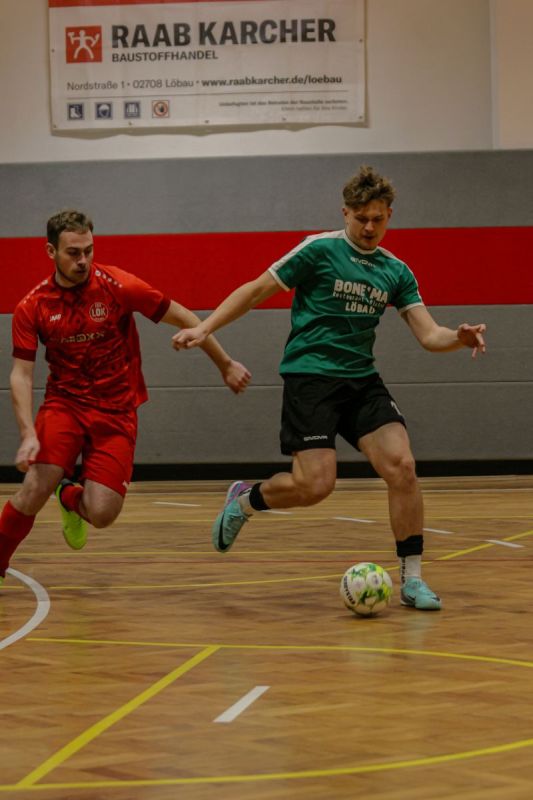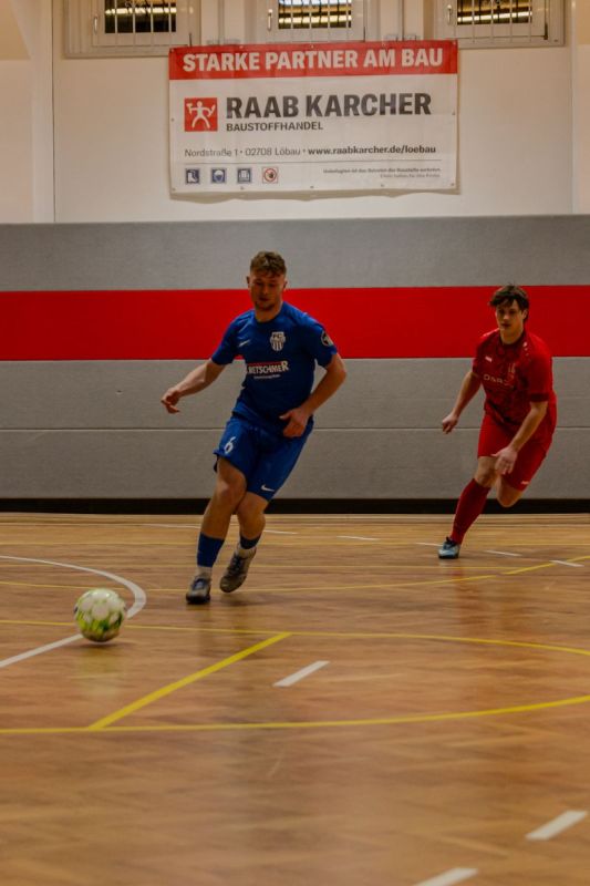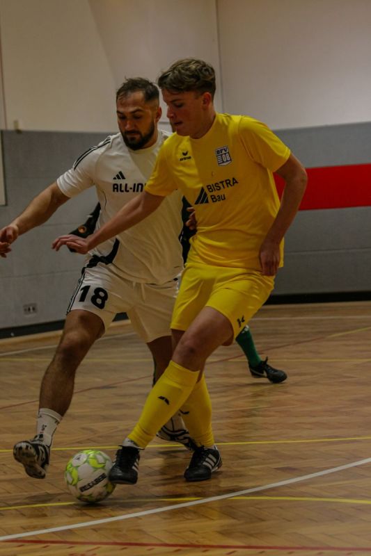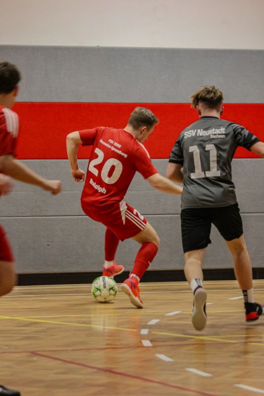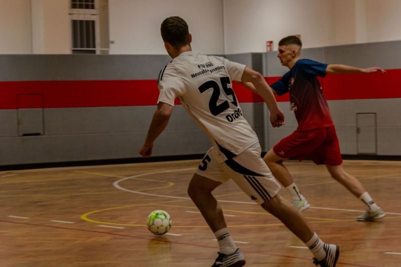 Beim ältesten Hallenturnier für Männermannschaften im Landkreis, dem Hallenturnier um den Pokal des Bürgermeisters der Stadt Neusalza-Spremberg, ging es am letzten Samstag des Jahres wieder ordentlich zur Sache in der Turnhalle an der Schulstraße. Im Vorfeld losten die FSV Vorstandsmitglieder Martin Grafe und Georg Schröer die Vorrundengruppen für dieses traditionsreiche Turnier aus. Als Gruppenköpfe waren, wie schon in den letzten Jahren, das weiße und das rote Team des FSV 1990 Neusalza-Spremberg gesetzt. So kam es wie schon im Vorjahr zum Eröffnungsspiel zwischen dem weißen FSV Team und der BSG Sohland-Oppach. Dabei gelang dem jungen Laurin Egea-Gimenez nach drei Minuten das erste Turniertor auf Vorlage von Sebastian Fularz. Dem BSG Stürmer Pascal Zimmer gelang auf Vorlage seines Torwarts Andy Buchwald der Ausgleich (6.). Aber erneut brachte Laurin Egea-Gimenez die FSV-Kicker wieder in Front, diesmal nach tollem Spielzug und Vorarbeit von Paul Jockusch (8.). Da die Neusalzaer ihre Möglichkeiten nicht konsequent nutzten und etwas sorglos agierten, gelang Pascal Zimmer in der Schlussminute erneut der Ausgleich (10.). Im zweiten Spiel der Gruppe A trafen die Landesliga A-Junioren des FC Oberlausitz Neugersdorf auf den ESV Lok Zittau. Die Zittauer 0:1 Führung durch Phillip Neumann glichen die Neugersdorfer postwendend aus und drehten das Spiel in einen 4:1 Sieg. In der Vorrundengruppe B besiegte das rote Neusalzaer Team die A-Junioren des Bischofswerdaer FV 08 klar mit 3:0. Der schnellen Führung durch Adrian Kittan (1.) folgten ein Pfostenschuss von FSV Keeper Dominic Schiring (3.) und ein weiterer Treffer von Adrian Kittan (5.) sowie das 3:0 durch Pavel Frie, der eine Vorlage seines Torwarts Dominic Schiring verwertete (10.). Im anderen Gruppe B Spiel drehte der FSV Kemnitz einen frühen Rückstand gegen den Turnierneuling SSV Neustadt/Sachsen in einen 1:2 Sieg. In einem ausgeglichenen und temporeichen Spiel zwischen dem weiß gekleideten FSV Team und den Neugersdorfer A-Junioren brachte Maximilian Hettler nach Vorlage von Tobias Draßdo die FSV Kicker in Front (2.). Sascha Rücker staubte zwei Minuten später zum 1:1 ab (4.). Erneut konnte Maximilian Hettler eine Draßdo Vorlage nutzen und das 2:1 markieren (7.). In der Schlussminute ging es Schlag auf Schlag. Zunächst glich Emilio Fröde zum 2:2 aus, ehe der Neusalzaer FSV Kapitän Tobias Draßdo ein Fularz Zuspiel zum 3:2 Siegtreffer im FCO Tor versenkte (10.). Der ESV Lok Zittau besiegte anschließend die BSG Sohland-Oppach ebenfalls mit einem Tor in letzter Minute mit 2:3. Das torreichste Spiel sahen die knapp 300 Zuschauer zwischen dem roten FSV Team und dem SSV Neustadt/Sachsen, dem Tabellenzweiten der Kreisoberliga Sächsische Schweiz/Osterzgebirge. Adrian Kittan legte zwei schnelle FSV Tore für Leon Erdmann (1.) und Dominic Schiring (2.) auf. Anschließend sorgte Pavel Frie für die Vorentscheidung. Zunächst markierte er das 3:0 (2.) und legte das 4:0 für Louis Rudolph auf (4.). Nachdem Florian Willner auf 4:1 verkürzte (6.), leistete sich Leon Erdmann ein zu heftiges Foulspiel und kassierte die erste von zwei Zeitstrafen des Turniers (7.). In Unterzahl erzielte Adrian Kittan sogar das 5:1 (7.), da FSV Keeper Dominic Schiring gut mitspielte und die Unterzahl geschickt ausglich. Nachdem Leon Erdmann wieder auf das Feld zurückkehrte, gelang ihm das 6:1 nach Vorlage von Adrian Kittan (9.). In der Schlussminute verkürzten Benjamin Michel und Paul Schröder das Ergebnis noch auf 6:3 (10.). Im darauffolgenden Spiel blieb es spannend bis in die Schlussminute. Dabei setzten sich die BFV Junioren mit 3:2 gegen den FSV Kemnitz durch, wobei der Siegtreffer erneut in der zehnten und letzten Minute fiel (10.). In der Gruppe A brauchten die weißen Neusalzaer noch einen Sieg, um als Erster in das Halbfinale einzuziehen. Dieser gelang gegen den ESV Lok Zittau eindrucksvoll. Tobias Draßdo (2.), Maximilian Hettler (3.), Paul Jockusch (3.) und Laurin Egea-Gimenez (4.) sorgten früh für klare Verhältnisse. Zudem verpasste Paul Jockusch mit einem weiteren Pfostentreffer sein zweites Tor (4.). Nach einer kurzen Verschnaufpause erhöhten Laurin Egea-Gimenez und Maximilian Hettler das Ergebnis auf 6:0, wobei der 7:0 Torschütze Tobias Draßdo beide Treffer vorbereitete. Alle drei FSV Tore fielen binnen weniger Sekunden (7.). Nach einem weiteren Pfostentreffer von Maximilian Hettler (8.) gelang dem Zittauer Emil Schäfer noch das Ehrentor zum 7:1 Endstand (8.). Zwischen dem Neugersdorfer Nachwuchs und den Männern der BSG Sohland-Oppach ging es im letzten Vorrundenspiel der Gruppe A um den Einzug ins Halbfinale. Der Westlausitzer Kreisligaaufsteiger benötigte dafür jedoch unbedingt einen Sieg. Die FCO Kicker blieben geduldig, und Carlos Rafael Salazar Negron erzielte nach sieben Minuten das entscheidende Tor zum 1:0 Sieg. Im dritten Spiel der roten Mannschaft des FSV 1990 Neusalza-Spremberg erzielten die beiden torhungrigen Neusalzaer Leon Erdmann und Adrian Kittan die Treffer für die Hausherren. Das 1:0 gegen den FSV Kemnitz gelang Leon Erdmann auf Vorlage von Adrian Kittan (2.), welcher wiederum nach Vorarbeit von Louis Rudolph auf 2:0 erhöhte (3.). Da sich auch Dominic Schiring immer wieder nach vorne einschaltete, bereitete der heimische Torwart das 3:0 von Adrian Kittan vor (6.). Louis Rudolph traf anschließend nur den Pfosten. Kurz vor Spielende verkürzte Toni Scheibe auf 1:3 für den FSV Kemnitz (9.). Doch Leon Erdmann nutzte die Vorarbeit von Louis Rudolph, um den alten Abstand wiederherzustellen (10.). Am Ende hieß es 4:1 für die rot gekleideten Neusalzaer FSV Kicker und Gruppensieg mit neun Punkten in der B Staffel. Zum Abschluss der Vorrunde siegten die Bischofswerdaer A-Junioren mit 5:0 Toren gegen den SSV Neustadt/Sachsen und trafen nach einer Pause auf den Sieger der Vorrundengruppe A, das weiße Team des FSV 1990 Neusalza-Spremberg. Dabei zeigten die BFV A-Junioren ein gutes Spiel und erkämpften sich mit