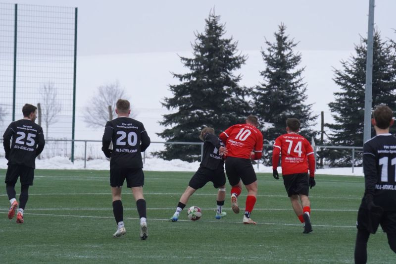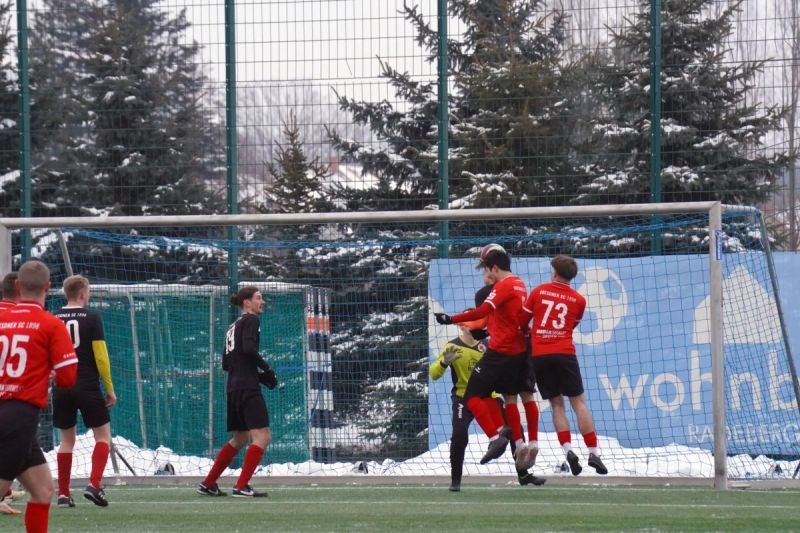 Nach einigen Testspielabsagen vereinbarten der Dresdner SC 1898 und der FSV 1990 Neusalza-Spremberg ein kleines Blitzturnier, an dem die Dresdner mit der 1. Männermannschaft und der 2. Männermannschaft teilnahmen. Im ersten Turnierspiel, welches über zweimal 35 Minuten ausgetragen wurde, fand der Landesligist gar nicht in die Begegnung und hatte große Probleme mit dem Kunstrasenplatz am Raderberger Vorwärtsstadion. Die Neusalzaer fuhren gleich Angriff auf Angriff in Richtung DSC Tor. So fing Andreas Wanacki einen zu kurzen Ball von DSC Keeper Marius Kuhl ab und flankte vor den DSC Kasten, wo Marius Kuhl den Ball an den Pfosten lenkte. Allerdings war FSV Stürmer Marius Riedel zur Stelle und staubte zum 0:1 ab (3.). Auch der zweite Neusalzaer Treffer resultierte aus einer Dresdner Ungenauigkeit heraus. Emilio Rau verunglückte ein Rückpass zu seinem Tormann und Neusalzas Paul Jockusch schob zum 0:2 in das leere Tor ein (9.). Anschließend spielten die Gäste zwei sehenswerte Treffer heraus, doch beide fanden wegen Abseitsstellungen keine Anerkennung. Zunächst versenkte Paul Jockusch eine Erdmann Eingabe (10.) und kurz darauf verwandelte Marius Riedel ebenfalls eine Eingebe von Leon Erdmann (12.). Es blieb aber beim 0:2 aus Sicht des Dresdner SC 1898. Nach einer Rau Ecke hatten auch die 98er ihre erste Möglichkeit, als Benno Sternhagen den Ball an die Latte setzte (15.). Nach einem kleinen Sololauf von Andreas Wanacki parierte Dresdens Tormann Marius Kuhl den Schuss den zentralen FSV Spielers (23.). Kurz vor der Pause eroberte Louis Rudolph einen schon fast verlorenen Ball an der Grundlinie zurück, spielte vor das Dresdner Tor, wo Marius Riedel zum 0:3 Pausenstand einschob (34.). Zur Pause brachten die Neusalzaer mit Dominic Schiring, Maximilian Hettler, Laurin Egea-Gimenez, David Haist, Felix Julius und Sebastian Tews gleich sechs neue FSV Spieler in die Partie. Diese benötigten eine gewisse Anlaufzeit und so sah sich der FSV 1990 Neusalza-Spremberg zunächst unter Druck. Folgerichtig war der 1:3 Anschlusstreffer der Friedrichsstädter. Eine Flanke des eingewechselten Serhii Lebediev legte Marvin Gabriel Longoria Pena mit der Brust ab und Maxim Lehmann konnte unbedrängt in das Neusalzaer Tor einschießen (40.). Die Neusalzaer stabilisierten sich anschließen nach und nach. In der 55. Spielminute brachte Leon Erdmann eine flache Eingabe von links vor das Tor, wo Felix Julius unter Mithilfe seines Gegenspielers den Ball zum 1:4 in die Maschen beförderte. Kurz darauf leistete sich Adib Al Akied eine Notbremse gegen Leon Erdmann, wofür er die gelbe Karte sah und vom Feld ging (56.). Den anschließenden Freistoß von FSV Kapitän Tobias Draßdo parierte DSC Tormann Marius Kuhl (57.). Die beste Möglichkeit in der offenen Schlussphase hatte dann noch Sebastian Tews für die Neusalzaer, doch sein Schuss aus halbrechter Position landete nur am Außennetz (68.).